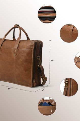 Craftshades – 4 Pockets 15″11 Vintage Shaded Handcrafted Briefcase Bag | 100% Genuine Leather