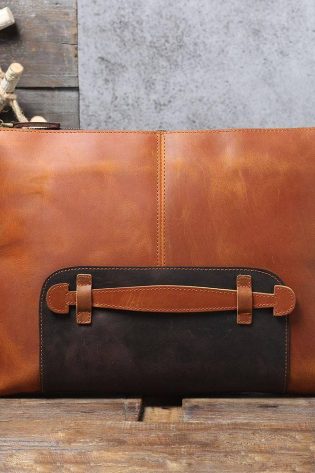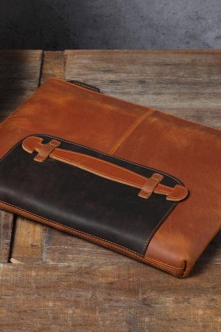 Craftshades – Vintage Double Strip Plain 10*13″ Handcrafted Goat Leather Laptop Bag | 100% Genuine Leather