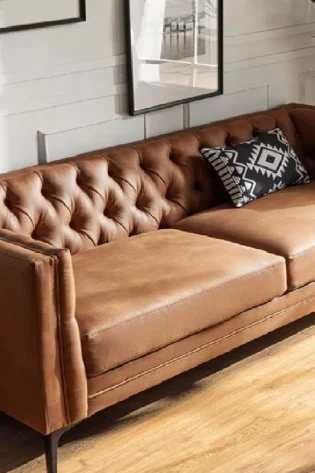 CraftShades uses premium leatherite fabric to deliver both durability and easy care. The warm brown shade with a vintage finish blends naturally with solid wood furniture, industrial designs, and minimalist interiors. Strong stitching and sturdy construction ensure this sofa will serve your home for years without losing its appeal. Each piece reflects the expertise of master craftsmen who prioritize both beauty and longevity.