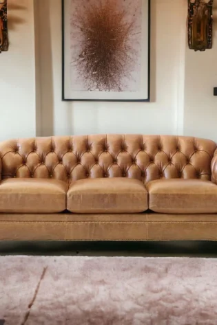 The Chesterfield sofa with ottoman by CraftShades brings traditional English charm into the heart of your home. Skilled artisans craft every detail with precision, ensuring this set not only looks stunning but also delivers everyday comfort. With a spacious seating area and a matching ottoman, your living space becomes a place for family gatherings, cozy evenings, and relaxed weekends.