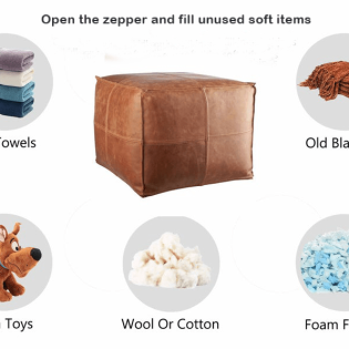 100% Goat Leather Pillow Cover – Sofa Cushion Case – Decorative Throw Covers for Living Room & Bedroom – Light Brown Pack of 1