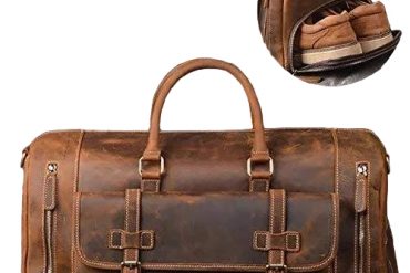 24 inch Buffalo Leather Duffle Bag with Shoes Compartment