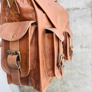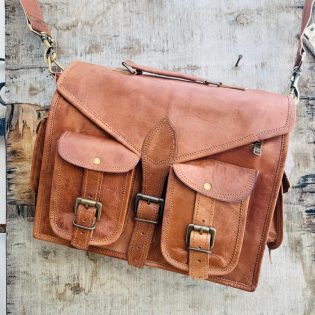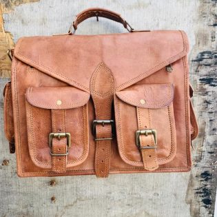 Craftshades – 11*15″ Double Pocket Handcrafted Laptop Messenger Goat Leather Bag | 100% Genuine Leather