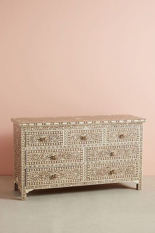 Handmade Arctic Bone Inlay Chest of Drawers