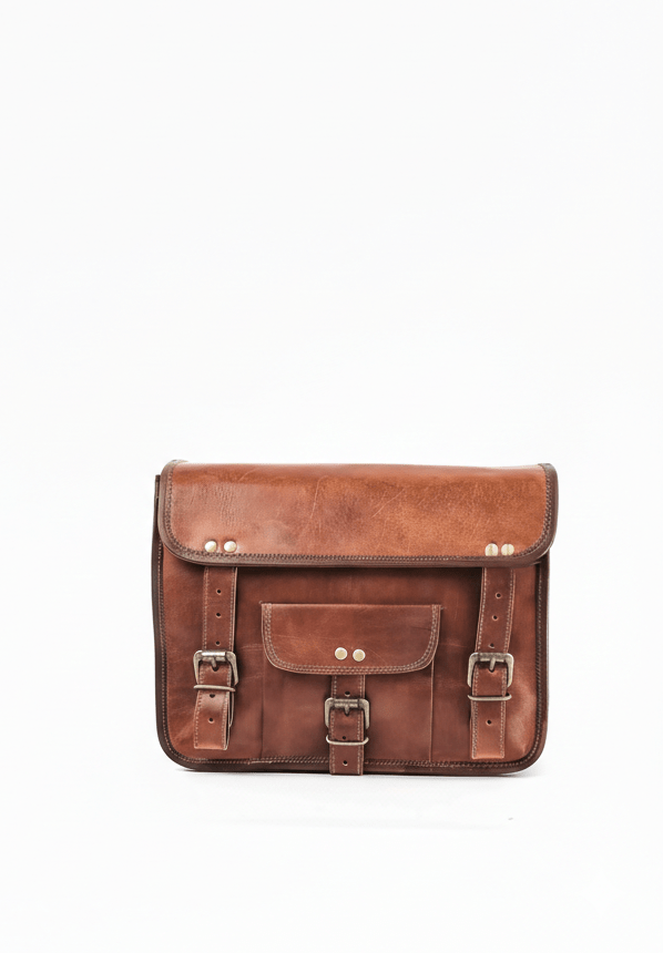 This small satchel features an adjustable shoulder strap, wide straps, and traditional metal buckle closures, giving it a classic retro appeal. Handcrafted by skilled Indian artisans, every stitch reflects precision and dedication, ensuring durability and a high-quality finish.