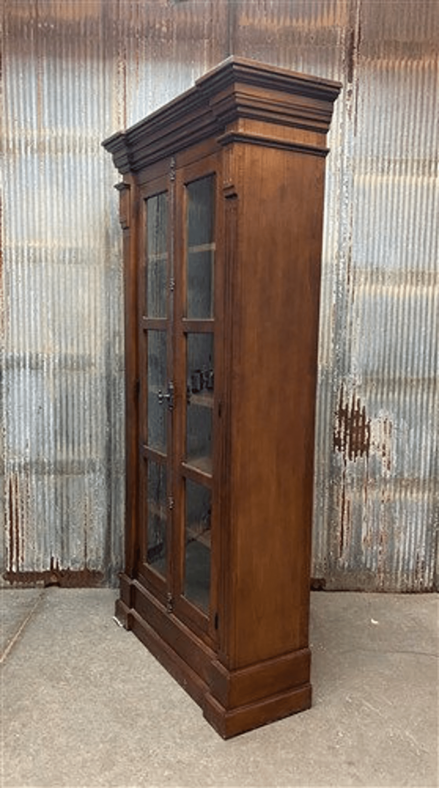 The glass panels should be cleaned with a gentle glass cleaner to maintain their clarity. Periodic checks of the hardware and hinges will ensure that the doors function smoothly without any wear and tear. With the right maintenance, this antique display cabinet will continue to exude elegance and charm for years to come.