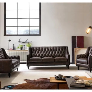 Among the many sofa designs, the Chesterfield style in an ivory hue offers an unparalleled sense of luxury and charm. The Chesterfield sofa, known for its deep button tufting, rolled arms, and elegant craftsmanship, takes on an even more majestic look in ivory. This combination blends the timeless appeal of the sofa’s design with the understated elegance of the color, making it a statement piece in any living room.