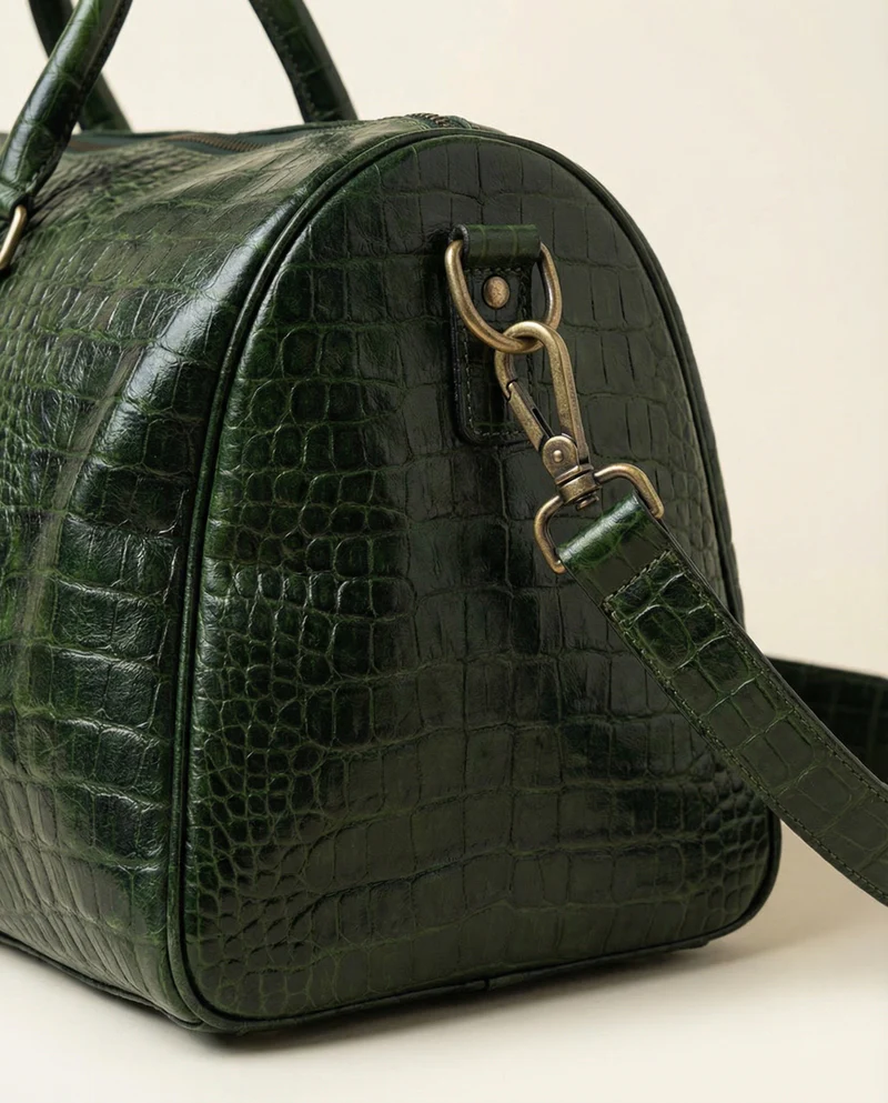 Crafted from premium 100% full-grain leather, the Forest Green Embossed Genuine Leather Duffle Bag by Custom Leathers represents true craftsmanship and timeless style. Each bag is carefully hand-finished to bring out the natural texture and depth of the leather, ensuring that every piece carries its own unique character.