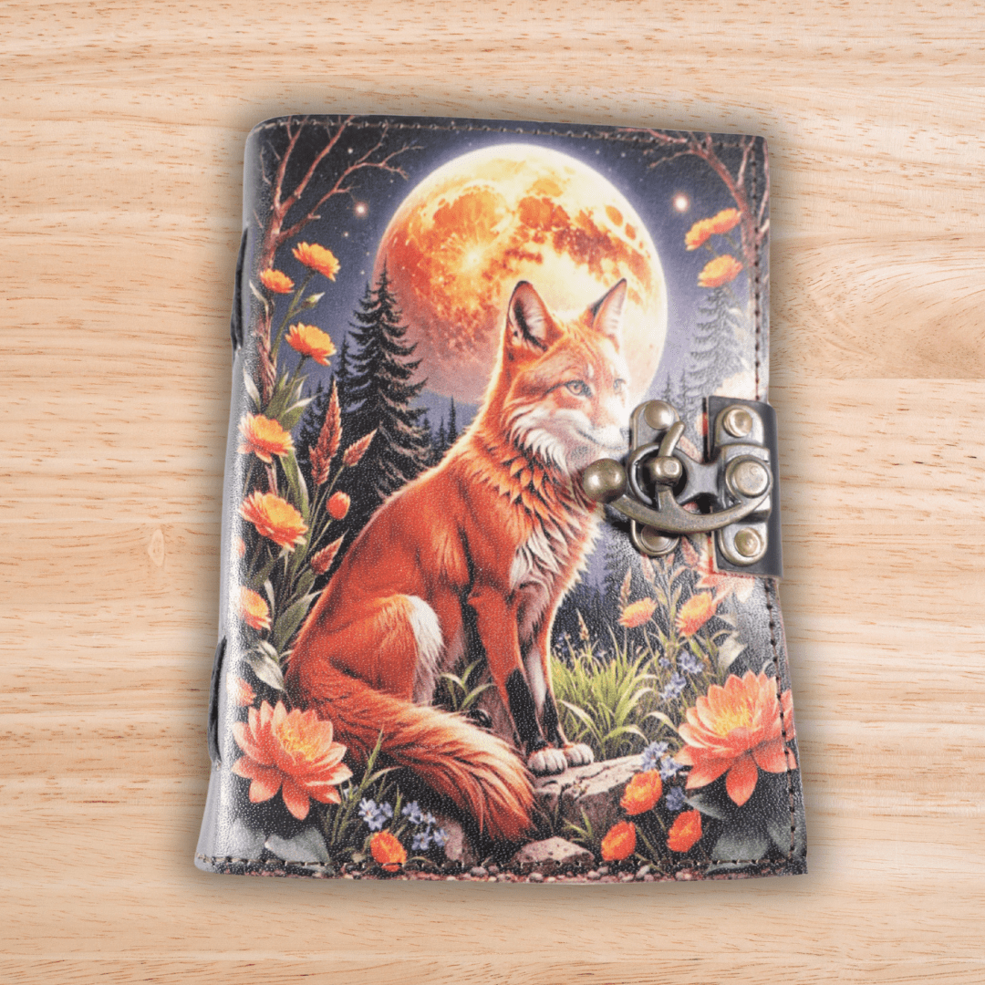 Design: Moonlit Fox Art Leather Diary with Antique Lock