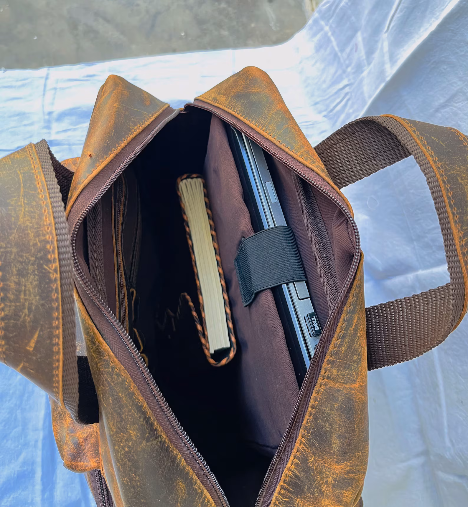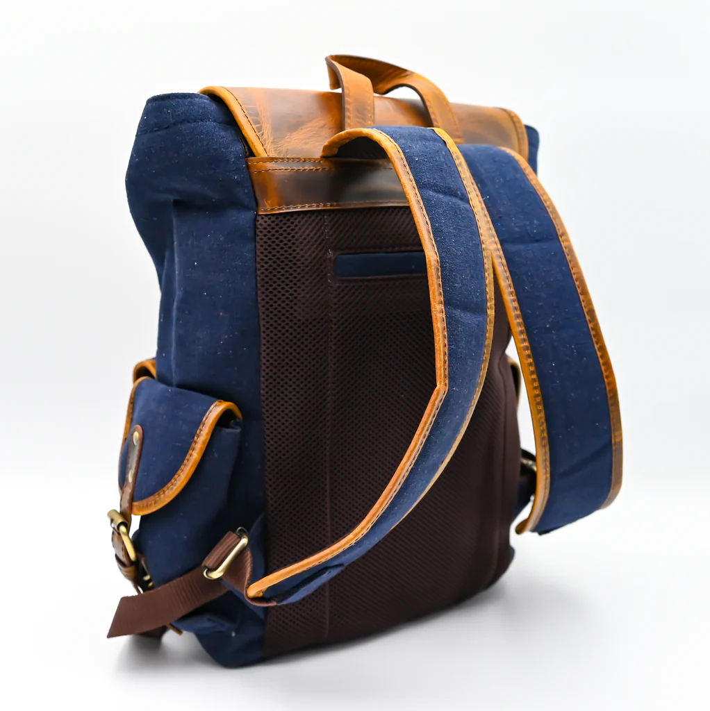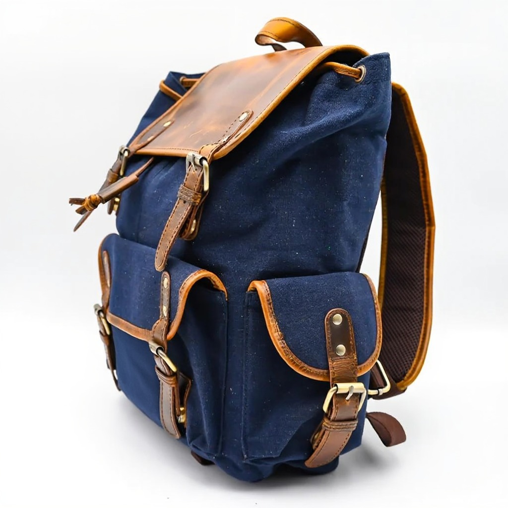 Built for everyday adventures, this durable cotton canvas backpack is reinforced with premium genuine leather and secured with smooth YKK zippers. Designed for all-day comfort, it features adjustable shoulder straps and a spacious main compartment with a padded sleeve that safely fits laptops up to 16 inches. Smart storage includes a hidden front zipper pocket for valuables, an easy-access front flap pocket, and a secure back zipper pocket for travel documents—making it the perfect companion for office, college, and travel.