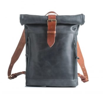 Becko Full Grain Leather Rolltop Backpack – Classic Black Urban Style