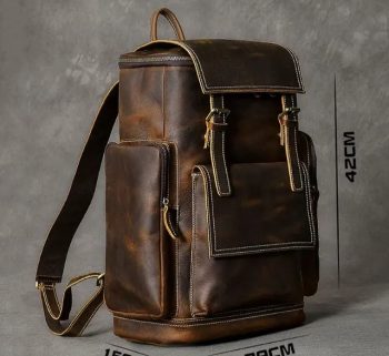 Craftshades –Zipper Closure Minimal Design Grain Leather Backpack Airport Suitcase Back Strap
