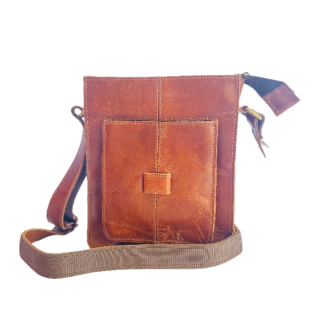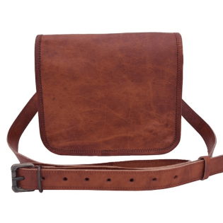 CraftShades -9*11 Inch cross body double pocket sling goat leather bag for boys & girls