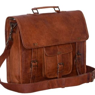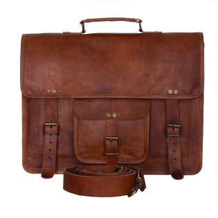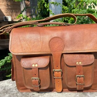 Craftshades – Full Flap Plain Handcrafted Leather laptop Bag | 100% Genuine Leather|11*15