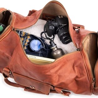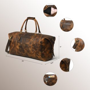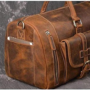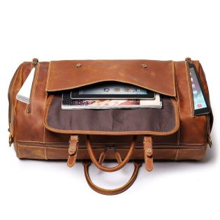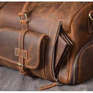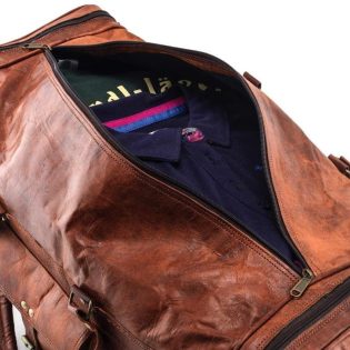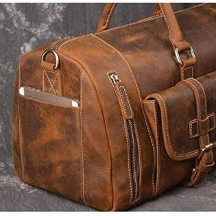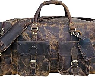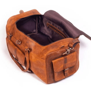 Craftshades – 3 Outer Pockets 24″ (Expandable) Edge Handcrafted Duffle Goat Leather Bag | 100% Genuine Leather