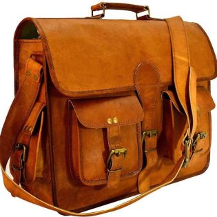 Craftshades – 16 Inch Handcrafted Briefcase Goat Leather Bag | 100% Genuine Leather