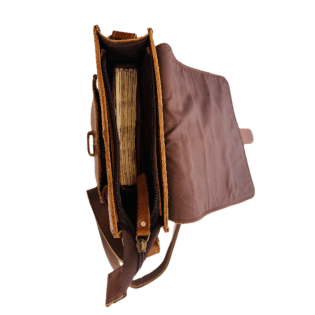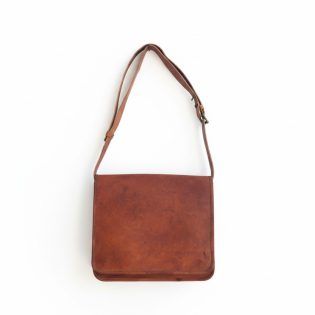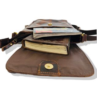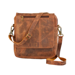 Craftshades – 11*15″ Half Flap Handcrafted Messenger Goat Leather Bag (Brown Tan) | 100% Genuine Leather