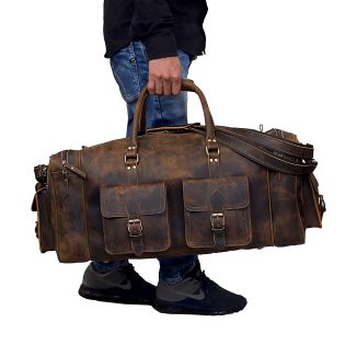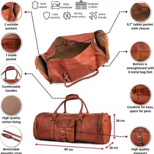 Craftshades – 22 Inches 4 Edges Handcrafted Duffle Goat Leather Bag | 100% Genuine Leather Bag