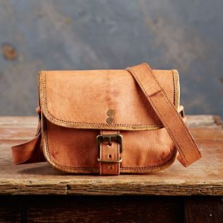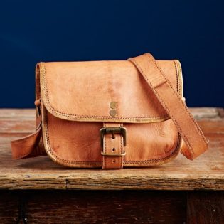 Craftshades – 9 Inch Full Flap Plain Handcrafted Small Goat Leather Sling Bag | 100% Genuine Leather