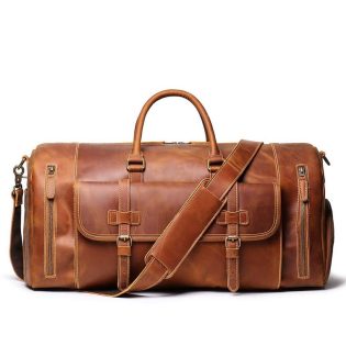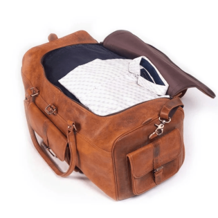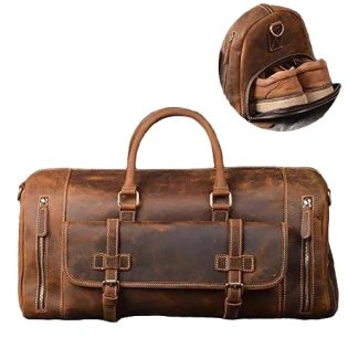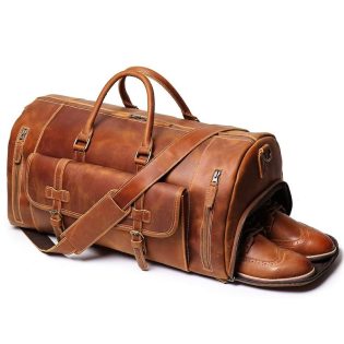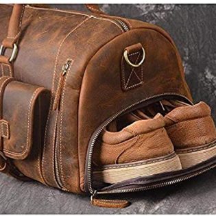 CraftShades: 20 inch Buffalo Leather Duffle Bag with Shoes Compartment| 100% Genuine Leather