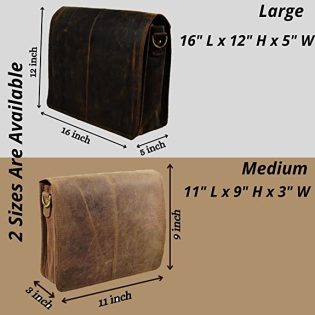 Craftshades – 11*15 Inch Double Pocket Handcrafted Vintage Messenger Goat Unisex Leather Bag | 100% Genuine Leather
