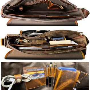 Craftshades – 11*15 Inch 4 Pockets Handcrafted Leather Bag| 100% Genuine Leather