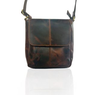 Craftshades – Double Strip Handcrafted Messenger Leather Bag (Brown) | 100% Genuine Leather